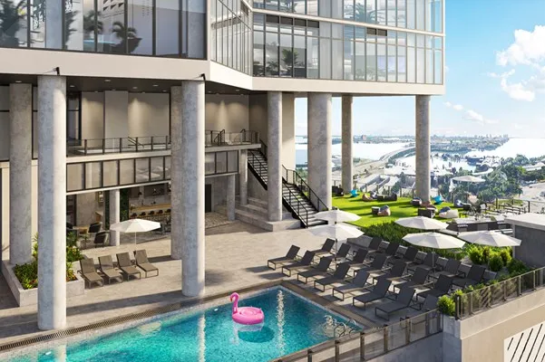 This bayfront, flexible rental concept will be ready to move in as early as summer 2022. The 49-story condo tower will be home to 646 fully-furnished residences and have an in-house property management team handling bookings to check-out. Amenities will include a two-level gym & fitness studio, a 132-foot resort-style pool with private lounge areas, a 16-foot poolside screening LED wall, a sky entertainment lounge with 8 grills, a Cafe Domino, a lobby with cocktail bar & restaurant by Jaguar Sun, a two-level co-working lab, curated art, and more.