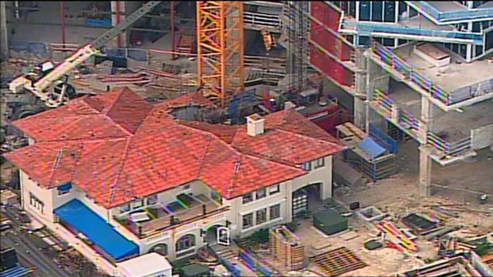 The gracefully curving Paramount Bay condominium tower on Bayshore Drive was originally designed to wrap around an iconic Mediterranean Revival house. Spanning the width of a full city block, Paramount Bay is a residential tower that bends in a quarter circle thrusting out to the bay. The house was famed for appearing in the movie ‘There’s Something About Mary.’ The exterior scenes in the movie, shot on Bayshore Drive, show just how much the neighborhood has changed, from a low-scale enclave of single-family homes to one of towering residential palisades.