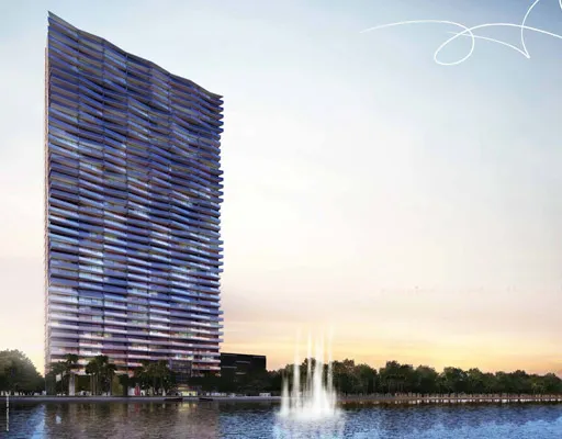 When the Icon Bay condominium tower was under construction at the end of an inlet from Biscayne Bay in the heart of Edgewater, marketing materials prominently showed a large fountain in the center of that inlet. The fountain would have been visible from the public park and bay walk built in front of Icon Bay, and from the amenities and condos located within it, and from quite a distance out in the bay due to the multi-story height of its water jets. The fountain, however, was never built. Perhaps the developer, the Related Group, wasn’t able to get permission to build it on public bay bottom, but that’s just speculation.