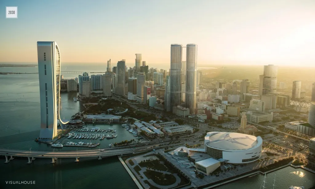 An international marketing and design firm known as Visualhouse put together a rendering of what Miami may look like in the year 2030. There are 11 visually unique projects that made the cut, which are either approved or are under construction. They used a pre-existing aerial picture of Miami and overlaid the buildings.