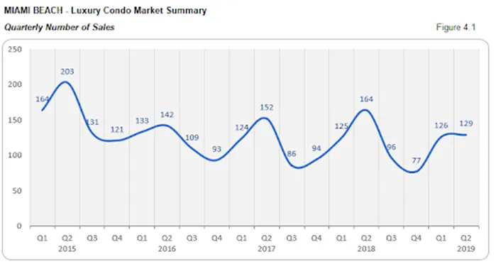 By the end of this second quarter, Miami Beach reported a 21% decline in its year-over-year sales versus a 15% improvement in the GDM area. We also noticed Miami Beach’s Q2 sales being at their lowest compared to year-over-year stats from 2018 to 2015. On the other hand, GDM’s numbers almost touched the highpoint of Q2 2015, while surpassing year-over-year comparisons to 2018, 2017 and 2016. (see fig. 4.1 and 11.1 below)