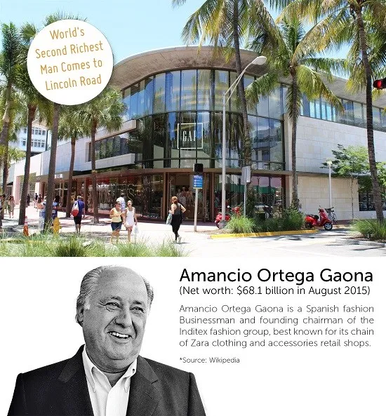 Ortega is the second billionaire to purchase land on Lincoln Road. In 2014, Joseph Safra purchased the American Apparel building for a record-breaking amount. Safra is worth $12.4 billion, making him the second richest man in Brazil.