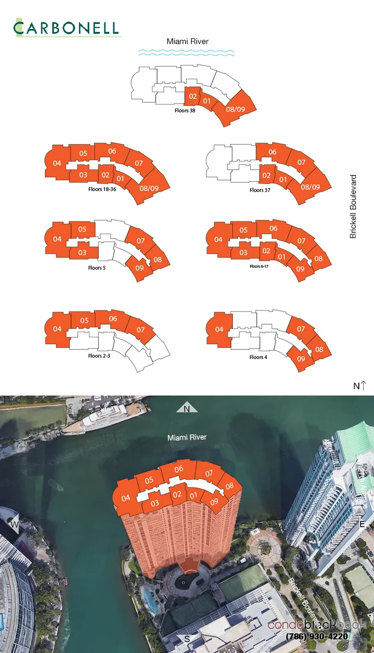 Carbonell: Towering over the northern tip of Brickell Key, offering unmatched bay and Downtown views, modern elegance, and private island luxuries