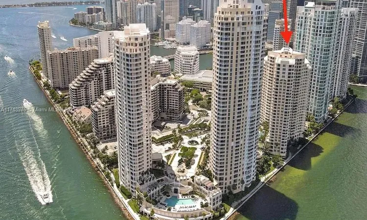 Brickell Key has long been a coveted address. Offering a private island lifestyle right next to the heart of Miami’s financial district, it guarantees you exclusive and secure luxury. Surrounded by water on all sides, condos on this triangular isle are designed to take advantage of its strategic position and often offer better price points than mainland Brickell. In this blog, we’ve listed the best condos in Brickell Key to give you a sense of the architecture, the amenities, and the prices you’ll encounter if you choose to own one of these high-end residences in Miami’s dynamic Brickell neighborhood. And with one of the most exciting and luxurious new developments in all of Miami on the horizon—The Residences at the Mandarin Oriental plus a new flagship Mandarin Oriental Hotel—to complete this idyllic island, its prestige and desirability are only increasing. ## — Why Choose Brickell Key? Brickell Key is a man-made, semi-private island off the coast of Brickell (mainland Miami). It is roughly 44 acres and has mostly residential condo towers properties, a couple of office towers, and a few cafes and shops. It’s a very unique spot to enjoy a private island lifestyle while also being very close to Brickell’s financial and urban action just a 10-minute walk away. Surrounded by water, Brickell Key features a park and a jogging path outlining the island—that you can see for yourself with our exclusive walking tour of Brickell Key—so you can make the most of those breathtaking views and bay breeze. This gated community might be compact, but is still home to urban conveniences including highly-rated Miami restaurants and the iconic spa and restaurants at the soon-to-be-rebuilt Mandarin Oriental Miami. Additionally, even though you’re within walking distance to all of Brickell, the condo towers here have covered and secured parking included in your condo ownership. ## — The Best Condos in Brickell Key Here are the most expensive condo towers in Brickell Key, Miami, ranked by price per square foot of available listings, as of the date of this blog post: ### 5\. Courts Condo #### **Address:** **801 Brickell Key Boulevard** #### **Average List Price:** $759 per square foot #### Built in 2002, Courts Condo Brickell Key rises 33 stories along a glistening waterfront with 319 well-appointed residences. It was designed by J. Scott Architecture and it’s perfectly positioned on the island to offer the best skyline views of Brickell and Downtown Miami. These spacious residences, featuring one to three bedrooms, and also offer floor-to-ceiling impact-resistant windows, walk-in closets, marble flooring, and other luxurious touches. Living here, you enjoy access to a host of amenities including a bayfront swimming pool, fitness center, squash and racquetball courts, business center, children’s playroom, and more. Units here come with an assigned parking spot and some also over small storage spaces. ### 4\. Two Tequesta Point #### **Address: 808 Brickell Key Drive** #### **Average List Price:** $849 per square foot Two Tequesta Point stands 40 stories tall on the eastern side of Brickell Key. Designed by J. Scott Architecture to capture uninterrupted bay views, the high-rise is home to 269 luxury residences. Developed by Swire Properties and completed in 1999, this modern tower features Mediterranean touches for a timeless appeal with large floor plans; one bedrooms start at 907 square feet, with larger floor plans going up to more than 5,000 square feet. A favorite if you love racquet sports, each of the Brickell Key condos for sale at Two Tequesta Point feature high-end finishes with access to resort-style amenities such as a bayfront pool deck, private waterfront cabanas, a barbeque area, squash and tennis courts, a children’s playroom, valet services, and more. ### 3\. Three Tequesta Point #### **Address:** **848 Brickell Key Dr.** #### **Average List Price:** $894 per square foot Built in 2001, Three Tequesta Point was the last addition to the three-condo Tequesta complex. Perched on the northeastern tip of Brickell Key, the high-rise is privy to enviable views of Biscayne Bay, the Miami River, Downtown Miami, and Dodge and Fisher Islands, and the greater Atlantic Ocean beyond. Also developed by Swire Properties and designed by J. Scott Architecture, this bayfront luxury tower features 46 stories with 238 luxury condos and boasts some of the most amazing views on the island. Amenities at this high-rise include the private island feel exclusive to Brickell Key, a two-level fitness center, a bayside pool deck, a spa, a tennis court, a squash court, a social room, a BBQ area, and much more. Floor plans here range from 1,087 square-foot 1 bedroom, 1.5 bath units to a 5-bedroom residence offering more than 5,300 square feet. ### 2. Carbonell #### **Address:** **901 Brickell Key Blvd** #### **Average List Price:** $902 per square foot Built in 2005, Carbonell stands 40 stories tall on Brickell Key’s exclusive waterfront. Designed by J. Scott Architecture, this statement building is home to 284 modern condo residences. Owing to its stellar position—dominating the tip of Brickell Key—residents get to enjoy enviable and unobstructed bay, river, and city views. Paying homage to its namesake, Cuban Contemporary and Modern sculptor Manuel Carbonell, an original bronze Carbonell sculpture stands greeting residents at the entrance. And with only nine residences per floor, each Carbonell condo comes outfitted with the finest of materials. Some of the amenities you can enjoy here as a resident include a waterfront swimming pool, a bi-level fitness center, tennis and racquetball courts, a club room with a prep kitchen, and much more. ## And the Most Expensive and Best Condo in Brickell Key Goes to… ### 1\. Asia #### **Address:** **900 Brickell Key Blvd** #### **Average List Price:** $2,047 per square foot Located on the northern edge of the island, Asia is the building where you’