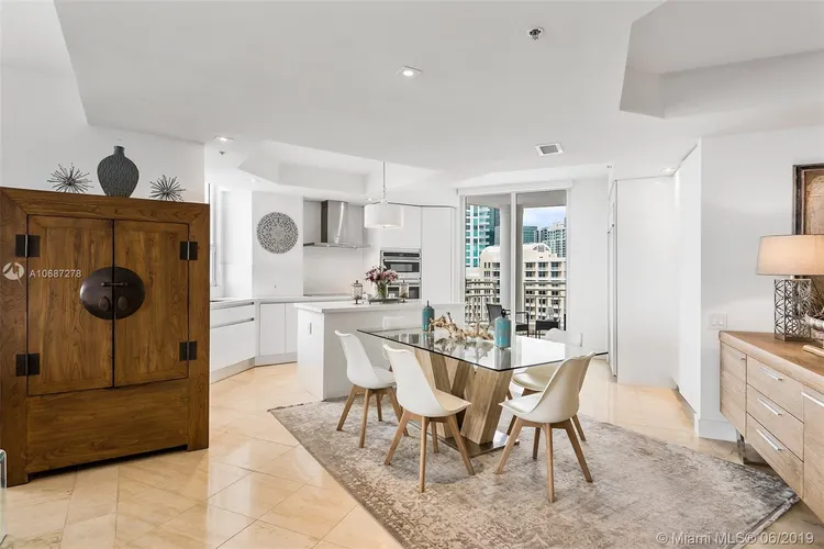 Brickell Key has long been a coveted address. Offering a private island lifestyle right next to the heart of Miami’s financial district, it guarantees you exclusive and secure luxury. Surrounded by water on all sides, condos on this triangular isle are designed to take advantage of its strategic position and often offer better price points than mainland Brickell. In this blog, we’ve listed the best condos in Brickell Key to give you a sense of the architecture, the amenities, and the prices you’ll encounter if you choose to own one of these high-end residences in Miami’s dynamic Brickell neighborhood. And with one of the most exciting and luxurious new developments in all of Miami on the horizon—The Residences at the Mandarin Oriental plus a new flagship Mandarin Oriental Hotel—to complete this idyllic island, its prestige and desirability are only increasing. ## — Why Choose Brickell Key? Brickell Key is a man-made, semi-private island off the coast of Brickell (mainland Miami). It is roughly 44 acres and has mostly residential condo towers properties, a couple of office towers, and a few cafes and shops. It’s a very unique spot to enjoy a private island lifestyle while also being very close to Brickell’s financial and urban action just a 10-minute walk away. Surrounded by water, Brickell Key features a park and a jogging path outlining the island—that you can see for yourself with our exclusive walking tour of Brickell Key—so you can make the most of those breathtaking views and bay breeze. This gated community might be compact, but is still home to urban conveniences including highly-rated Miami restaurants and the iconic spa and restaurants at the soon-to-be-rebuilt Mandarin Oriental Miami. Additionally, even though you’re within walking distance to all of Brickell, the condo towers here have covered and secured parking included in your condo ownership. ## — The Best Condos in Brickell Key Here are the most expensive condo towers in Brickell Key, Miami, ranked by price per square foot of available listings, as of the date of this blog post: ### 5\. Courts Condo #### **Address:** **801 Brickell Key Boulevard** #### **Average List Price:** $759 per square foot #### Built in 2002, Courts Condo Brickell Key rises 33 stories along a glistening waterfront with 319 well-appointed residences. It was designed by J. Scott Architecture and it’s perfectly positioned on the island to offer the best skyline views of Brickell and Downtown Miami. These spacious residences, featuring one to three bedrooms, and also offer floor-to-ceiling impact-resistant windows, walk-in closets, marble flooring, and other luxurious touches. Living here, you enjoy access to a host of amenities including a bayfront swimming pool, fitness center, squash and racquetball courts, business center, children’s playroom, and more. Units here come with an assigned parking spot and some also over small storage spaces. ### 4\. Two Tequesta Point #### **Address: 808 Brickell Key Drive** #### **Average List Price:** $849 per square foot Two Tequesta Point stands 40 stories tall on the eastern side of Brickell Key. Designed by J. Scott Architecture to capture uninterrupted bay views, the high-rise is home to 269 luxury residences. Developed by Swire Properties and completed in 1999, this modern tower features Mediterranean touches for a timeless appeal with large floor plans; one bedrooms start at 907 square feet, with larger floor plans going up to more than 5,000 square feet. A favorite if you love racquet sports, each of the Brickell Key condos for sale at Two Tequesta Point feature high-end finishes with access to resort-style amenities such as a bayfront pool deck, private waterfront cabanas, a barbeque area, squash and tennis courts, a children’s playroom, valet services, and more. ### 3\. Three Tequesta Point #### **Address:** **848 Brickell Key Dr.** #### **Average List Price:** $894 per square foot Built in 2001, Three Tequesta Point was the last addition to the three-condo Tequesta complex. Perched on the northeastern tip of Brickell Key, the high-rise is privy to enviable views of Biscayne Bay, the Miami River, Downtown Miami, and Dodge and Fisher Islands, and the greater Atlantic Ocean beyond. Also developed by Swire Properties and designed by J. Scott Architecture, this bayfront luxury tower features 46 stories with 238 luxury condos and boasts some of the most amazing views on the island. Amenities at this high-rise include the private island feel exclusive to Brickell Key, a two-level fitness center, a bayside pool deck, a spa, a tennis court, a squash court, a social room, a BBQ area, and much more. Floor plans here range from 1,087 square-foot 1 bedroom, 1.5 bath units to a 5-bedroom residence offering more than 5,300 square feet. ### 2. Carbonell #### **Address:** **901 Brickell Key Blvd** #### **Average List Price:** $902 per square foot Built in 2005, Carbonell stands 40 stories tall on Brickell Key’s exclusive waterfront. Designed by J. Scott Architecture, this statement building is home to 284 modern condo residences. Owing to its stellar position—dominating the tip of Brickell Key—residents get to enjoy enviable and unobstructed bay, river, and city views. Paying homage to its namesake, Cuban Contemporary and Modern sculptor Manuel Carbonell, an original bronze Carbonell sculpture stands greeting residents at the entrance. And with only nine residences per floor, each Carbonell condo comes outfitted with the finest of materials. Some of the amenities you can enjoy here as a resident include a waterfront swimming pool, a bi-level fitness center, tennis and racquetball courts, a club room with a prep kitchen, and much more. ## And the Most Expensive and Best Condo in Brickell Key Goes to… ### 1\. Asia #### **Address:** **900 Brickell Key Blvd** #### **Average List Price:** $2,047 per square foot Located on the northern edge of the island, Asia is the building where you’