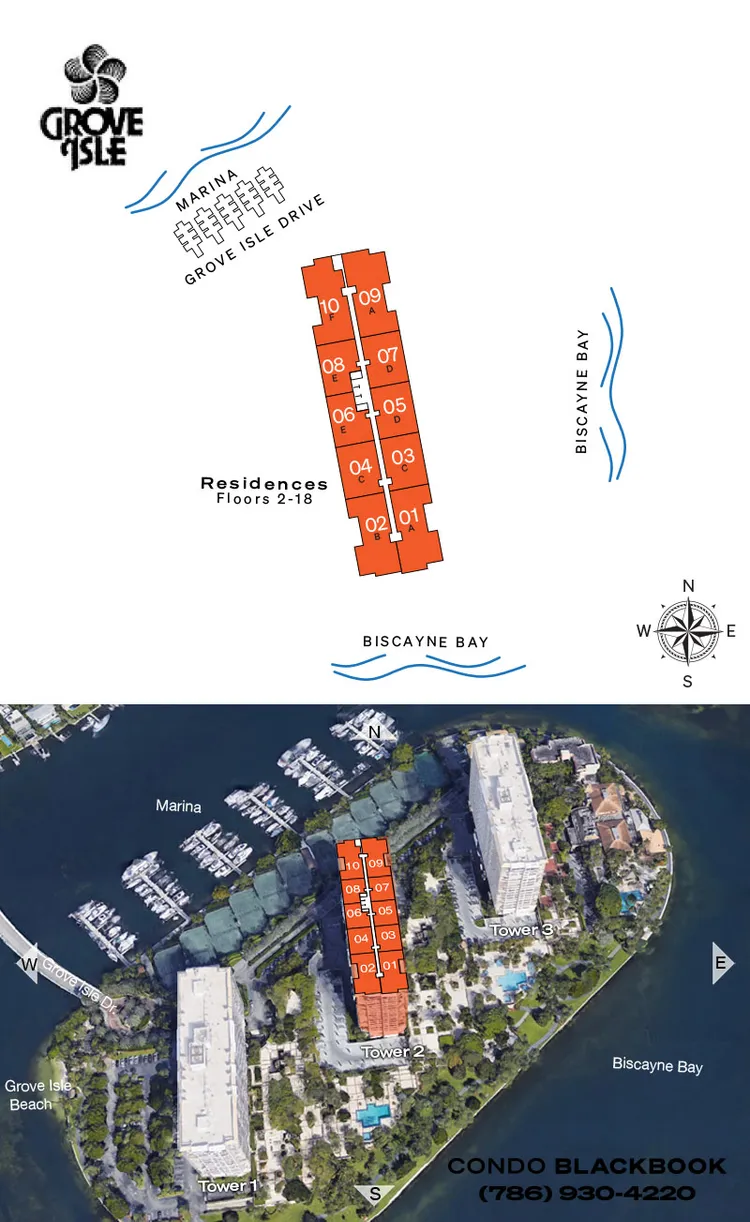 One in the trio of luxury condo buildings perched on a 21-acre private island by the same name, Two Grove Isle is the middle tower that houses 2- and 3-bedroom residences. Rising 18 stories with 169 elegantly appointed residences, this is classic island living at its best.