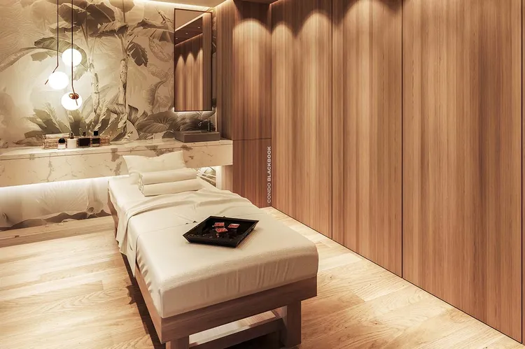 Standout amenities at the luxury residence will include a stunning resort-style pool with chaise lounges and floral veranda cabanas, an outdoor BBQ area, a sophisticated His & Hers spa, a natural wood sauna and steam room, a state-of-the-art fitness center, a dedicated yoga studio, a grand porte cochère with valet services, an impressive lobby with reception and concierge services, a private clubroom and event space with chef’s kitchen, a dedicated kids club and playroom, professional co-working spaces, a rooftop garden with seating areas, a yoga lawn, TVs, fire pit, and panoramic views, ground floor retail space, and more.