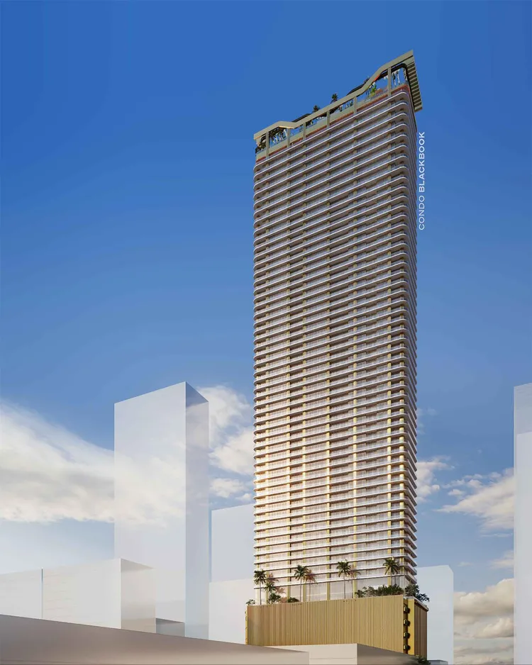 Designed by the esteemed Kobi Karp, Clear Residences will rise 60 stories, featuring 544 luxury residences, 3,680 square feet of ground-floor commercial space, and ample parking. The distinctly modern architectural structure features a glimmering facade adorned in gold with sleek, rounded corners and tropical landscaping by KEITH Landscape Architects skillfully woven throughout.