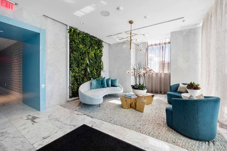 • Grand Marble Lobby Fitted with 16-foot Ceilings