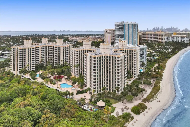 Key Biscayne is a coveted neighborhood offering the best of South Florida living in an intimate, family-focused island setting. With uncluttered and semi-private beaches, acres of lush national park space, lots of greenery, tennis facilities, golf courses, and family-friendly safety, this island is a harmonious suburban community with quick access to Miami’s best. Residents rate this tropical paradise as one of the finest places to build a life and raise a family. It is so desirable that even stars like Lionel Messi, Lenny Kravitz, Cher, Andy García, Latin pop star Juanes, former president Nixon, and tennis superstar Mary Joe Fernandez have decided to call Key Biscayne home at some point. So, if you’re curious to know what the very best of island living in Miami is like, we’ve got all the insider details. Here’s our expertly curated list of the five best condos in Key Biscayne and why each deserves its position. ###### _Ranking is based on the average price per square foot of listings at the time of this blog post._ --- ## — Why Choose Key Biscayne? Key Biscayne offers residents the utmost privacy and a strong sense of community. With only about 15,000-20,000 full-time residents, it’s an affluent enclave with a median household income of more than $172,000 and many guard-gated condo buildings. The island's unmatched recreational offerings include a fabulous golf course right on the island, two world-class tennis facilities—one formerly home of the Miami Open Tournament—and Miami's best crowd-free beaches. Plus, it offers the natural beauty of Bill Baggs Cape Florida State Park, and all is accessible by golf cart! It is also home to some of Miami’s top-rated public schools, making it great for families. And it has plenty of restaurants and conveniences, which make trips to the mainland less of a necessity. If you do need to head inland, all it takes is a very scenic 15-minute drive, which drops you right between Coconut Grove and Brickell, with very easy access to I-95\. Mesmerizing ocean views and a drive through nature’s lap at Crandon Park make commuting from home a special affair. If you want to get a closer look at what living here is like, watch our exclusive video where you’ll learn all about Key Biscayne. ## — The Best Condos in Key Biscayne ### 5\. Ocean Club - Ocean Tower One **Address:** 799 Crandon Boulevard **Average List Price:** $1,534 per square foot With panoramic water and/or nature views available from each of its 93 luxurious units, this 16-story building is one of the three beachfront towers present at the iconic Ocean Club development in Key Biscayne. Built in 2002, this tower is set within a 52-acre community, offering 1,000 feet of picturesque frontage and access to several high-end amenities including a private 20,000-square-foot beach club, a tennis club with six clay courts, two padel courts, a beachside bar and grill, a gourmet restaurant with outdoor dining, expansive pools, a salon and a boutique, and more ### 4\. Ocean Club - Ocean Tower Two **Address:** 791 Crandon Boulevard **Average List Price:** $1,636 per square foot Part of the same 52-acre condo complex as Ocean Tower One, Ocean Tower Two is a classically designed condo building, rising 20 stories with 100 luxury condo units. Like its sister tower, it is one of the best condos in Key Biscayne on the beach. Residents of this gated community get access to high-end amenities such as 1,000 feet of pristine beach frontage, tennis courts, private beach access, a beachside bar and grill, a 20,000-square-foot beach club, a private health and fitness spa, a gourmet restaurant, expansive pools, and much more. It’s truly a favorite of many Key Biscayne residents ### 3\. Ritz-Carlton Key Biscayne **Address:** 455 Grand Bay Drive **Average List Price:** $2,134 The Ritz-Carlton Key Biscayne is one of the most luxurious complexes on the island. Besides the condo-hotel, the 12-acre property houses a 20,000-square-foot spa, fine retail shops, and dining options, plus the highly regarded Cliff Drysdale Tennis Center with 11 courts—including Har-Tru, padel, and pickleball courts—where both professional athletes and recreational players regularly train. Residents of this 12-story, 188-unit condo-hotel finished in 2001 get the unique benefit of owning a unit in a condo-hotel, along with access to a private beach with two restaurants, a beachfront kids' playground, two oversized pools facing the ocean, and many other signature services from the hotel known for its sumptuous luxury—all while being pet-friendly! The property is also completing a massive renovation, giving residents and guests an entirely new luxury experience. If you would like to learn about other Ritz-Carlton Residences in South Florida, check our in-depth guide where we list all properties. ### 2\. Grand Bay Residences **Address:** 445 Grand Bay Drive **Average List Price:** $2,183 per square foot Sitting right next to the Ritz-Carlton Key Biscayne, The Grand Bay Residences is known for its 137 luxury residences spread across three, 13-story towers. Part of the same gated, Ritz-Carlton community, it is a residential-only tower, with no hotel component. Thanks to its exceptional water and lush nature views, this 12-acre complex is where you’ll want to look for the best Key Biscayne oceanfront condos for sale. As a resident, you’ll get top-of-the-line amenities, including access to the Cliff Drysdale Tennis Center, a 20,000 sq. ft. spa, a luxury gym and fitness center, two oversized pools facing the ocean with two restaurants, and a sophisticated social room. Living here, you’ll find lovely outdoor gardens and scenic walking paths, a 24-hour concierge service, valet, conference/meeting room, as well as being just steps away from all of Key Biscayne’s shops and dining. ## — And the Best Condo in Key Biscayne Goes to… ### 1\. Oceana Key Biscayne **Address:** 350-360 Ocean Drive **Average List Price:** $2,312 Here w