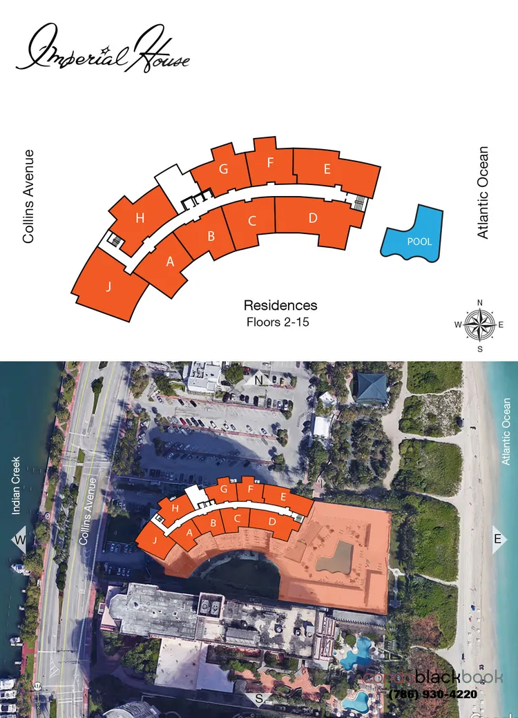 The Imperial House condominium is located along the famed Millionaire's Row in Miami Beach, with direct access to a private ocean beach as well as to the Indian Creek Marina across the street. The Imperial House also provides easy access to South Beach with all of its nightlife and shopping, and is also close to the exclusive Bal Harbor Shops and the Indian Creek Country Club and Golf Course. A short bike ride from Ocean Drive, Lincoln Road, and the heart of South Beach, The Imperial House provides a relaxed beachfront lifestyle with distinctive luxury and comfort.