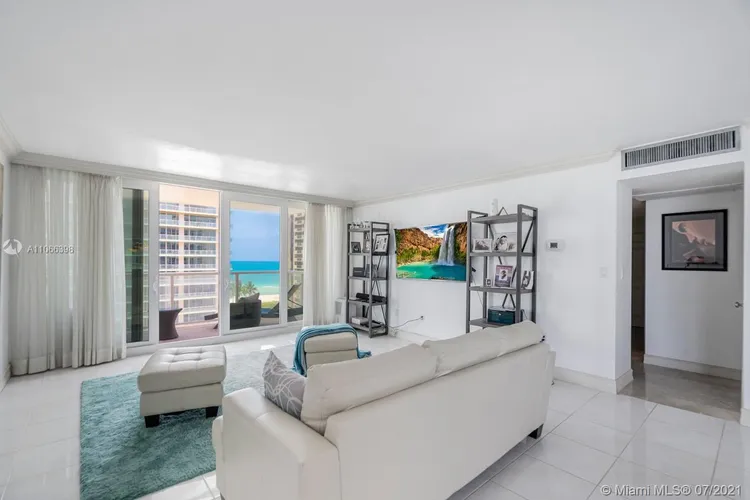 Corner unit with ocean and intercoastal views. Double thick crown molding (ceiling and floor). Tinted Hurricane resistant impact sliding glass doors. Floor to ceiling silk curtains. Stainless steel appliances. Updated bathrooms, kitchen, balcony. Large master walk in closet. Wall to wall closet in guest bedroom, built in drawers. Murphy bed (for room savings). Brushed nickel hardware (faucets). Separate storage unit included Indoor parking spot TV wall mount installation ready. Great neighbors. Balcony updated with glass walls. Neighborhood electrical wires under ground?- limited power outages during hurricanes ? Outside of unit Updated gym Heated pool Party room 24 hour concierge Dog friendly Free Collins shuttle stop in front of building