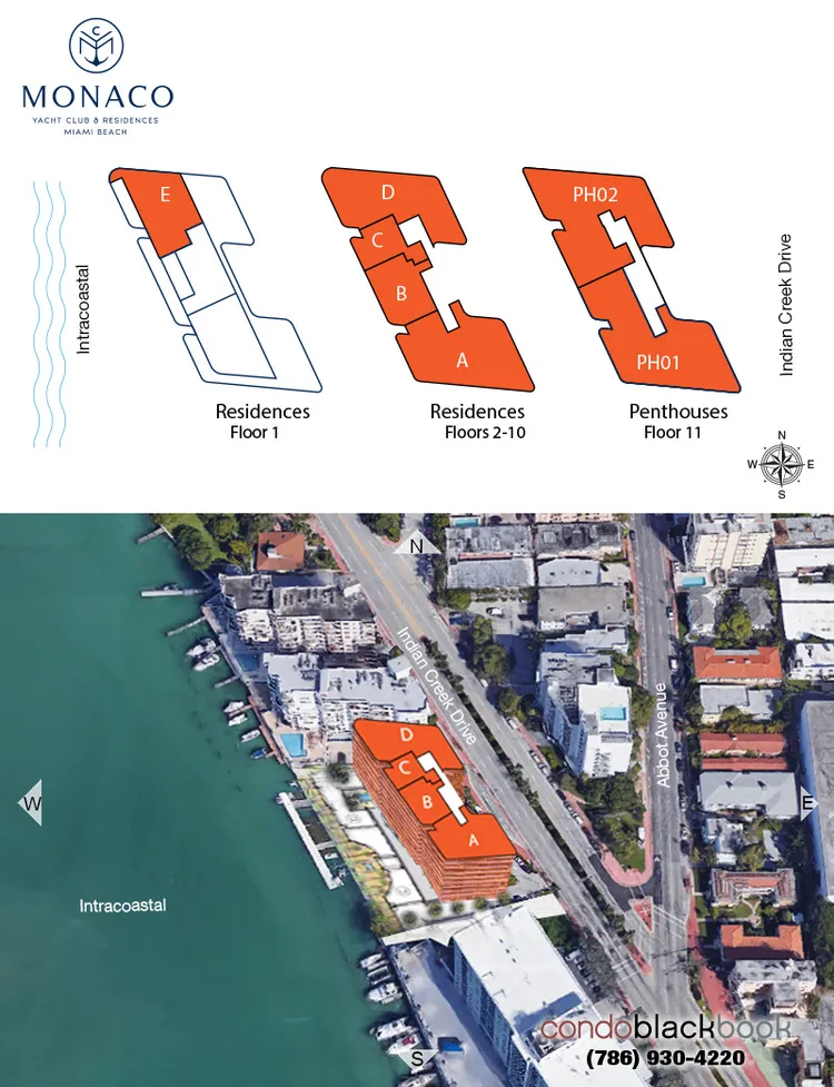 Sitting directly on the waterfront of Biscayne Bay in North Beach, residents find themselves on the quieter side of Miami Beach. Living at the Monaco Yacht Club & Residences, residents are within walking distance from the beach, a Publix Supermarket, and the North Beach Bandshell. By car, La Gorce Country Club is 5 minutes, the Normandy Isles Golf Course is 10 minutes, shopping at Bal Harbour is 15 minutes, rare finds at Mid-Beach’s Faena Bazaar are 20 minutes, South Beach’s famous nightlife is 25 minutes, and Downtown Miami is 30 minutes away.