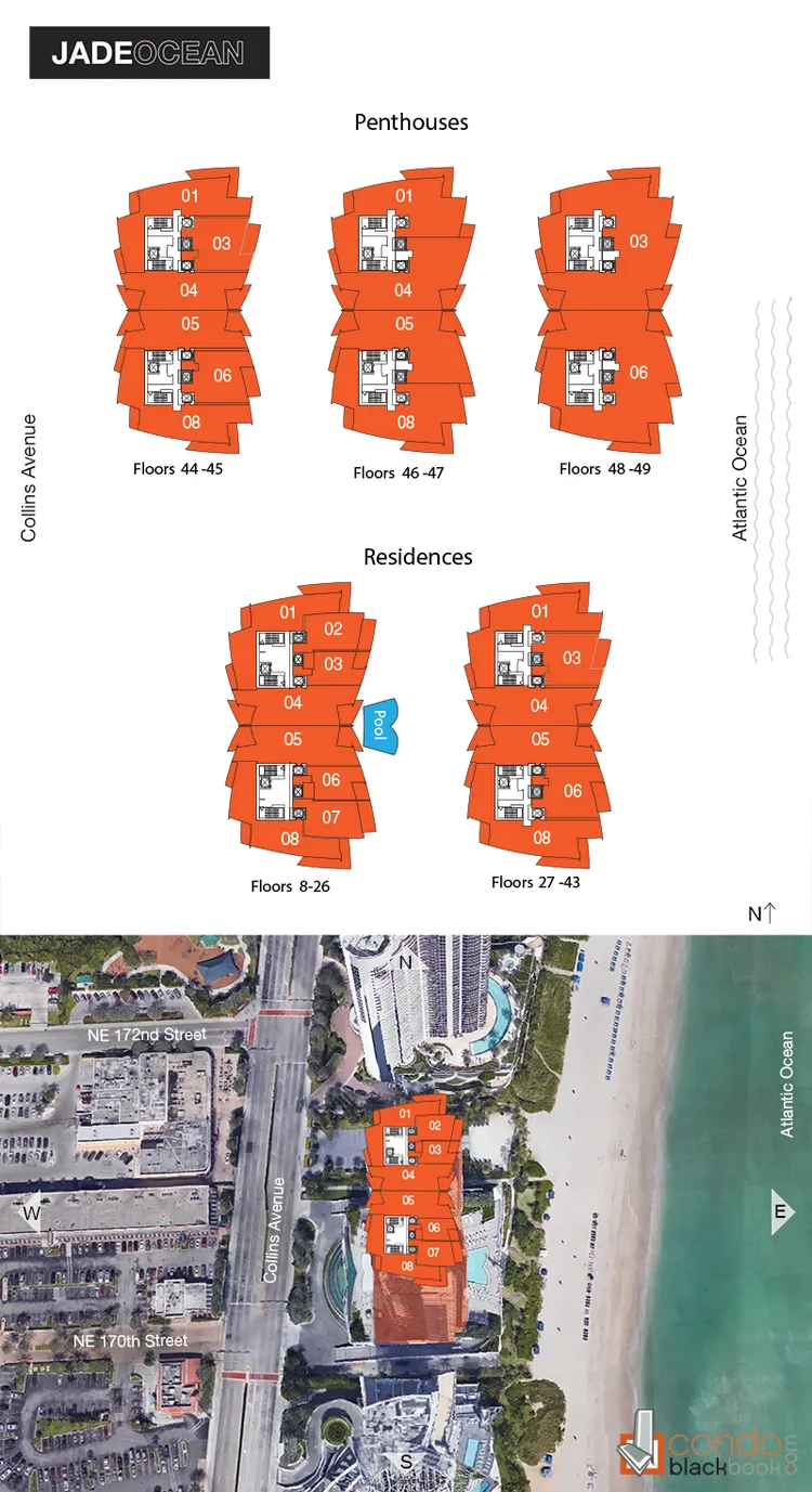 • A few steps from the exciting Aventura Mall and Bal Harbour Shops, a short drive from the sizzling South Beach and almost equidistant from the Miami as well as Fort Lauderdale International Airports, the Jade Ocean Sunny Isles Beach boasts of a location second to none.