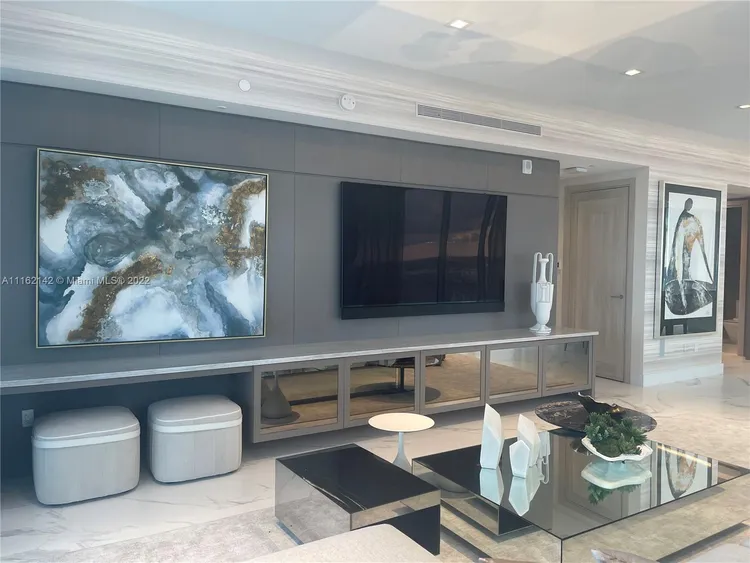 This jaw-dropping unit was designed and furnished by INTERIORS BY STEVEN G and is being sold TURN KEY! This unique floor plan is corner north residences featuring 4 bedrooms plus a family room, media room, study, and service/maid quarters. Smart home with Savant-controlled automation blackout blinds, and floor-to-ceiling windows. This stunning condo offers 360 degrees of completely unobstructed views that flow out to beautiful expansive terraces from every room. Including 3 parking spots steps outside of the elevator on P1 and an airconditioned storage unit. A full-service Hamman spa, outdoor water therapy terrace; fitness facilities, yoga deck, pilates, and spin studios. Clubroom ideal for private events and a stunning pool with cabanas on the beach with a Bar & Grill.