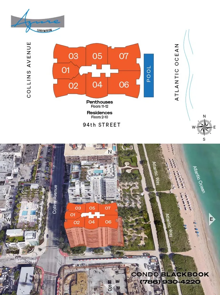The Azure is nestled oceanside in the small beach town of Surfside, a short walk’s distance from Bal Harbour Shops, close to an array of dining options along Collins Avenue, and a short drive from Lincoln Road, and the vibrant nightlife of Ocean Drive and South Beach.
