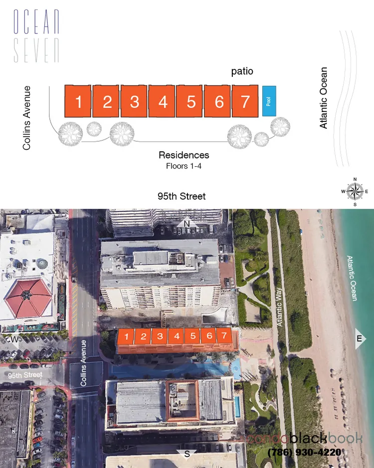 With that quintessential private community feel, Ocean Seven sits on one of the finest, unspoiled stretches of waterfront in Miami Beach. Within walking distance of the ultra-luxury Bal Harbour Shops and conveniences of the Surfside Plaza shopping center, residents rarely need to venture further than a few for anything that they desire. By car, South Beach is 25 minutes, Aventura is 30 minutes, and Downtown Miami is 45 minutes.
