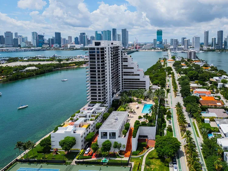 Miami Beach’s Venetian Islands are a coveted set of isles tucked into the east side of Biscayne Bay, linking South Beach via the Venetian Causeway to mainland Miami in Edgewater. While most of the Venetian Islands’ condo buildings are older, they are still coveted for their location, history and sense of community. And many have recently completed comprehensive renovations, reviving exteriors, refreshing interiors, and upgrading amenities. If you’re interested in buying in the Venetian Islands, including Belle Isle, and its secluded community, this guide highlights the top five most luxurious condos for sale on the Venetian Islands, which also happen to be the most expensive buildings in this highly desirable pocket-sized neighborhood. Read on to find out what it’s like to live on this idyllic island, the kinds of amenities these top-class residences provide, and which building tops our list. ## — Why Choose the Venetian Islands? This island retreat is a little-known address in Miami Beach that is one of our favorite secrets because it’s perfectly located and made up mostly of single-family homes. Residents not only get to relish the joys, views, and privacy of island living, but they’re also perfectly positioned for a short drive to South Beach and Edgewater or Downtown Miami, on either side, via the scenic Venetian Causeway. Secluded living, a real sense of community, and the option to easily dive into all the action in a matter of minutes make Venetian Islands properties some of the most prized in Miami. Most of the Venetian Island condos are located on the circular Belle Isle, centered around Belle Isle Park. And all of the Venetian Island condos are waterfront, making for spectacular living. ## — The Best of the Best Condos in the Venetian Islands ### 5\. Costa Brava 11 Island Avenue, Venetian Islands | Average List Price: $841 per square foot This classic Bayfront tower on Belle Isle rises 22 stories and is home to 216 luxury condos. Units at this pet-friendly building from 1972 are oversized, with one-bedrooms starting at approximately 1,000 square feet. Amenities include an ocean-access marina with boat slips, a heated pool overlooking the bay, a sundeck, a basketball court, and a multi-purpose room. The fitness center, lobby and elevators have all been recently modernized. ### 4\. Nine Island Avenue 9 Island Avenue, Venetian Islands | Average List Price: $1,086 per square foot Perched on one of Miami Beach’s largest and most premium bayfront parcels, Nine Island is home to about 270 Venetian Islands luxury condos surrounded by acres of lush meandering gardens, a resort pool deck, and coveted boat slips and dockage services. Designed by Sklar Isaac & Associates, this resort-like condo was built in 1981 and is undergoing a multi-year renovation to be completed in the summer of 2026\. Improvements include the replacement and redesign of the pool, spas, fountains, landscaping, and amenities. Additional amenities include a large porte-cochere and valet, pet-friendly premises, a party room, a fitness center, tennis courts, and a billiards room. Once a kitschy reminder of 80s resort luxury, this 25-story high-rise now features modern and sleek interiors and common spaces. ### 3\. 1000 Venetian Way 1000 Venetian Way, Venetian Islands | Average List Price: $1,132 per square foot A design aficionado's favorite, the twin towers at 1000 Venetian Way are positioned to offer all residents exquisite views of the bay and the sailboats over at the Miami Yacht Club in a secluded location that will never have obstructed views. Both towers rise only 22 stories to house a total of 122 expansive, modern luxury residences. 1000 Venetian Way hosts spacious, airy residential units that feature expansive views of Biscayne Bay from every room, with an open floor plan design. Each condo delivers both sunrise and sunset views. Built in 1983, the building went through extensive renovations in 2022\. Amenities include tennis courts, a basketball court, a bayfront swimming pool, a dog park, a lushly landscaped outdoor picnic area, and more. ### 2\. Grand Venetian 10 Venetian Way, Venetian Islands | Average List Price: $1,304 per square foot One of the crown jewels of Belle Isle, this modern high-rise condo building occupies one of Miami Beach’s premium bayfront parcels. Designed by Kobi Karp, one of Miami’s architectural icons, and completed in 2001, just steps from The Standard Hotel and Spa, the Grand Venetian is home to 124 luxury condos peppered across 25 floors, each with expansive, glass balconies and unobstructed bay, city and ocean views. Multi-million dollar renovations have been recently made to the pool, tennis court and barbecue, bar and cabana areas. You also have access to a porte-cochere with a valet, a completely covered parking garage, a private party room, and a gym at this pet-friendly Venetian Islands condo. ## — And the Winner of the Most Expensive Condo in Venetian Islands Goes To… ### 1\. Belle Towers 16 Island Avenue, Venetian Islands | Average List Price: $2,038 per square foot An absolute gem of a vintage, boutique condo building, Belle Towers features exquisite mid-century modern details and a gorgeous pool on the bay on Belle Isle. Offering panoramic water and city views, this bayfront tower built in 1958 is home to only 46 luxury condos spread across nine stories and is highly sought after by the national and international design community. Amenities at this pet-friendly building from the late 1950s include an open-air lobby with koi ponds, unobstructed water views, a swimming pool, a spa, a handful of boat slips, and extra-large floor plans. ## — What Is the Best-Located Condo in the Venetian Islands? Over the years, we’ve become quite the experts in finding the best-located condos in Miami Beach. As a matter of fact, we were spoiled for choice here, so we decided to name two condos as the best located in the Venetian Islands. We choose the twin-tower